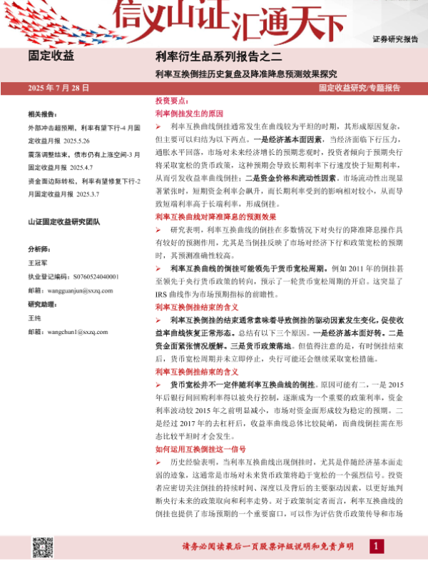 【山证固定收益研究团队】【202507】利率互换倒挂历史复盘及降准降息预测效果探究-21页 证券期货研究报告