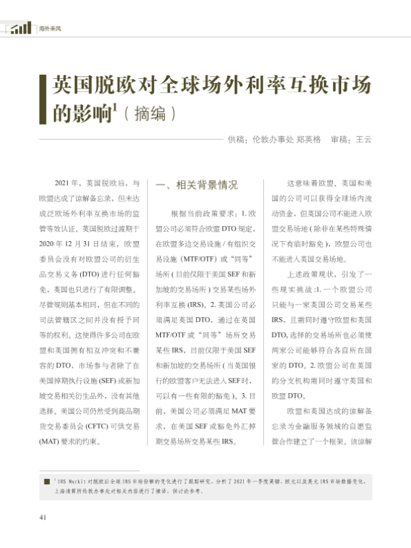 【上海清算所伦敦办事处】【202105】英国脱欧对全球场外利率互换市场的影响1(摘编), 授权加密货币交易机构作为支付机构的影响1(摘译), 跨境信用衍生品的联系1-28页 行业研究