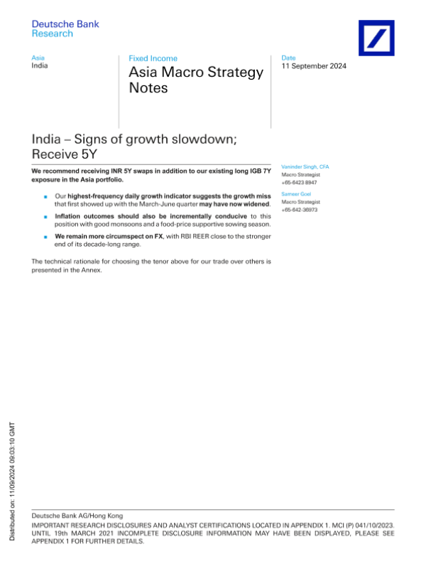 【Deutsche Bank Research】【20240911】India – Signs of growth slowdown; Receive 5Y-12页 宏观策略