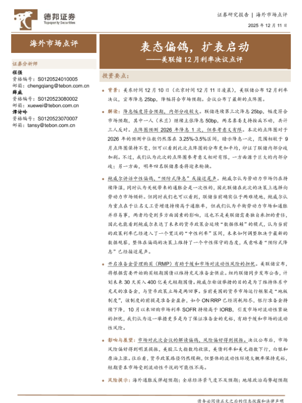 【民银国际研究团队】【202512】美联储降息且表态偏鸽,重新扩表意欲何为-17页 证券期货研究报告