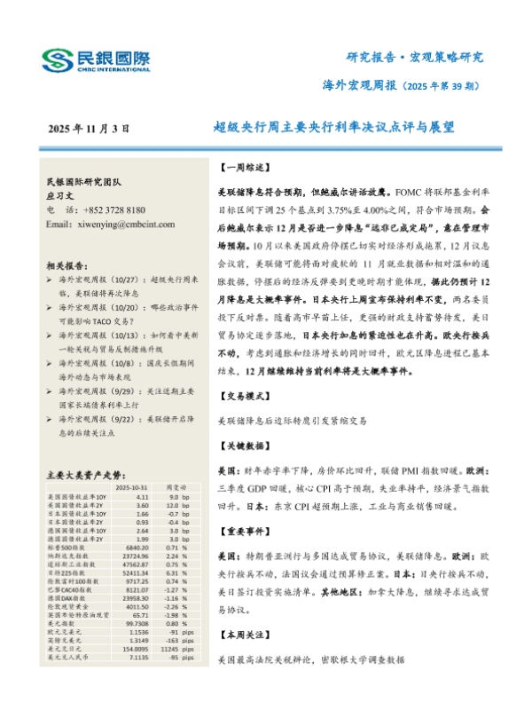 【民银国际研究团队】【202510】海外宏观周报(2025年第 39期):超级央行周主要央行利率决议点评与展望-18页 宏观策略