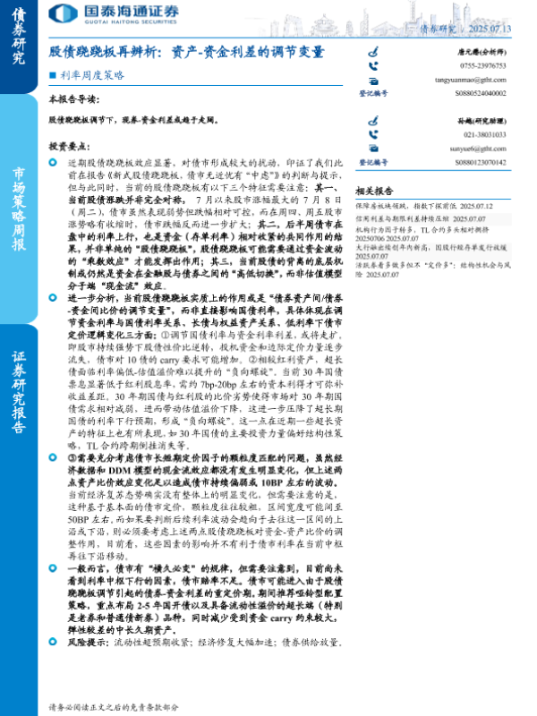 【国泰海通证券】【20250713】利率周度策略-股债跷跷板再辨析:资产-资金利差的调节变量-11页 证券期货研究报告