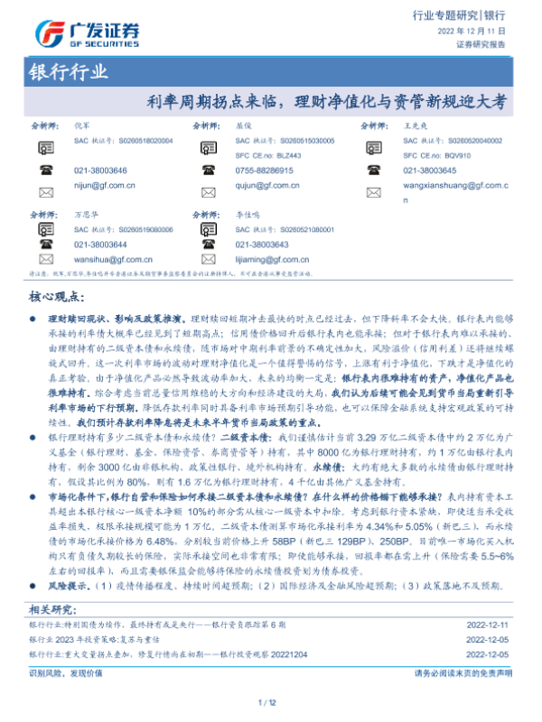 【广发证券】【20221211】利率周期拐点来临,理财净值化与资管新规迎大考-12页 行业研究