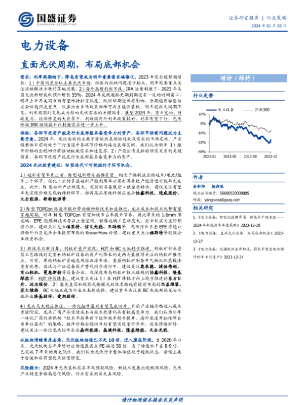【国盛证券】【20240102】电力设备行业策略:直面光伏周期,布局底部机会-27页 行业研究