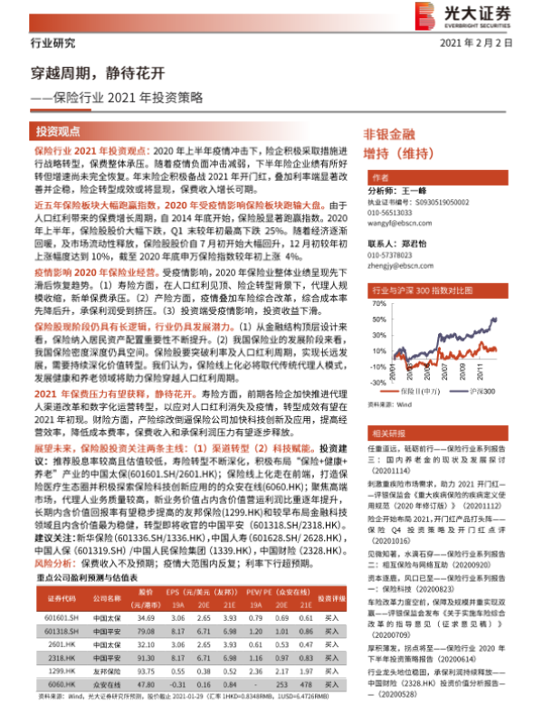 【光大证券】【20210202】保险行业2021年投资策略:穿越周期,静待花开-48页 行业研究