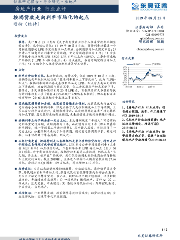 【东吴证券】【20190825】按揭贷款走向利率市场化的起点-2页 行业研究