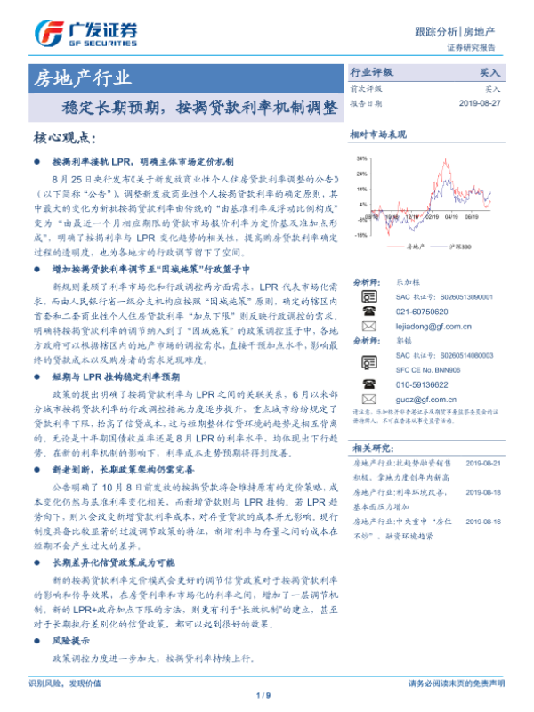 【广发证券】【20190827】稳定长期预期,按揭贷款利率机制调整-9页 行业研究