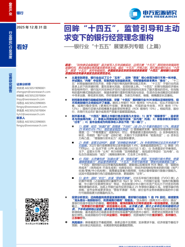 【申万宏源】【202512】银行业“十五五”展望系列专题(上篇):回眸“十四五”,监管引导和主动求变下的银行经营理念重构-33页 证券期货研究报告
