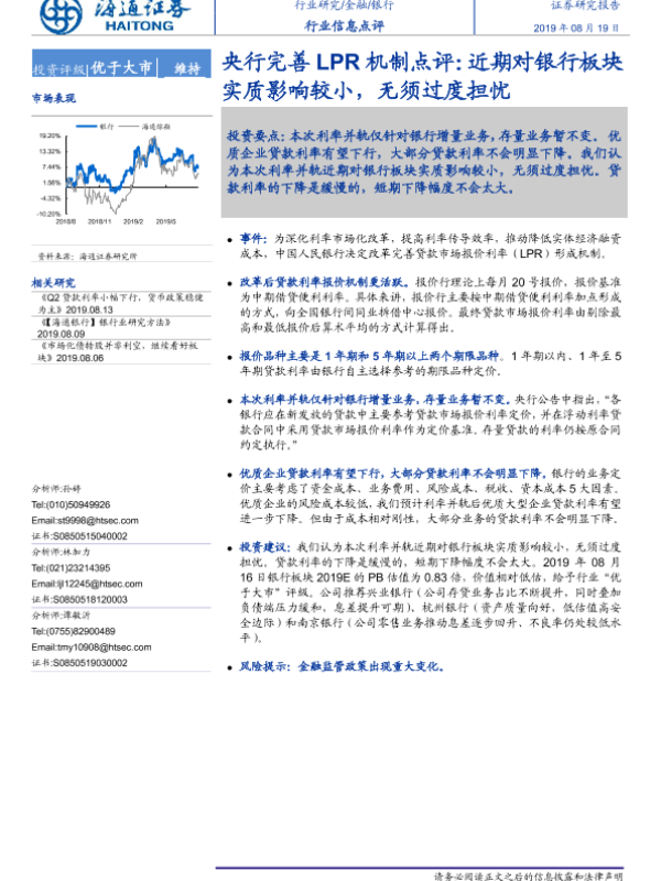 【海通证券】【20190819】央行完善LPR机制点评:近期对银行板块实质影响较小,无须过度担忧-2页 行业研究