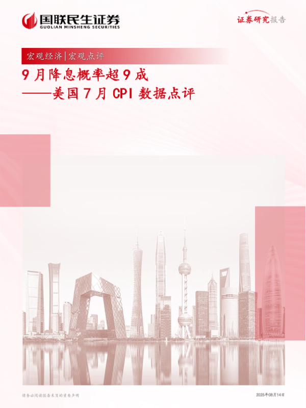 【国联民生证券】【202508】美国7月CPI数据点评:9月降息概率超9成-20页 证券期货研究报告