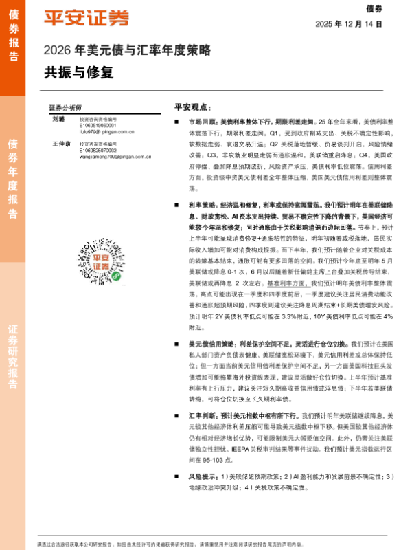 【它安证券研究所】【2025】2026年美元债与汇率年度策略_共振与修复-25页 证券期货研究报告