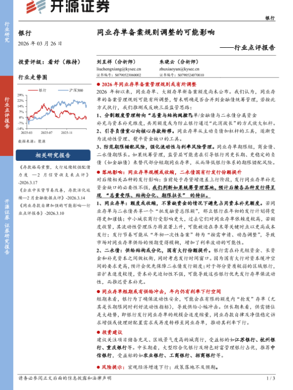 【开源证券】【202603】同业存单备案规则调整的可能影响-3页 证券期货研究报告