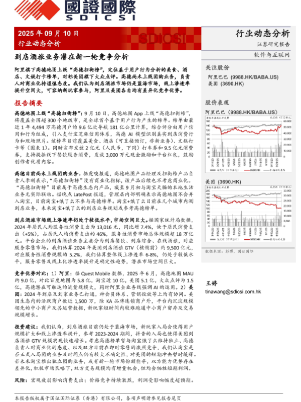 【东吴证券】【20250910】阿里-到店酒旅业务潜在新一轮竞争分析-4页 证券期货研究报告