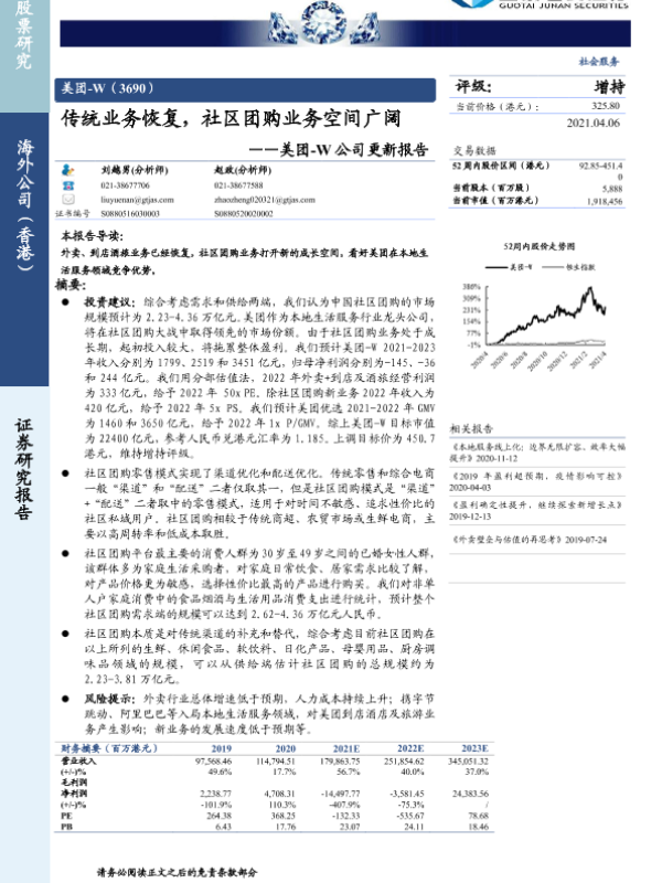 【国泰君安证券】【20210406】美团:传统业务恢复,社区团购业务空间广阔-33页 行业研究