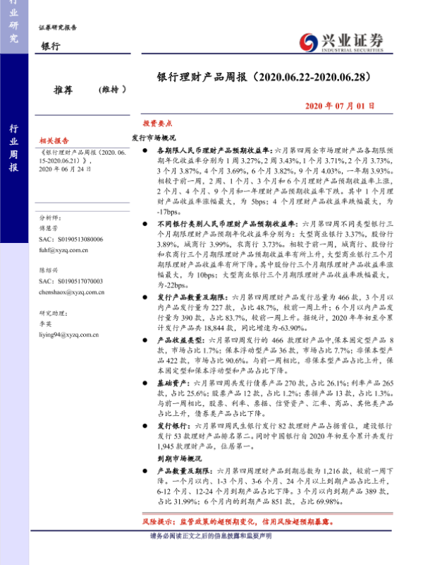 【兴业证券】【20200701】银行理财产品周报-17页 行业研究