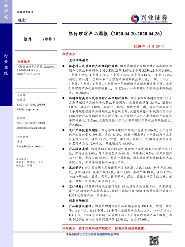 【兴业证券】【20200429】银行理财产品周报-16页 行业研究