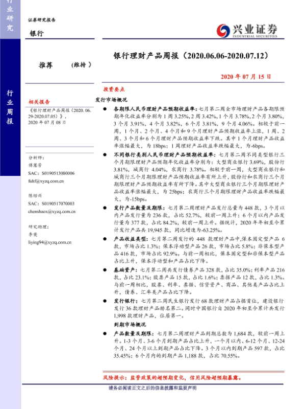 【兴业证券】【20200715】银行理财产品周报-17页 行业研究