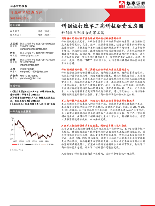 【华泰证券】【20190303】20190303-华泰证券-科创板系列报告之军工篇:科创板打造军工高科技融资生态圈-7页 行业研究