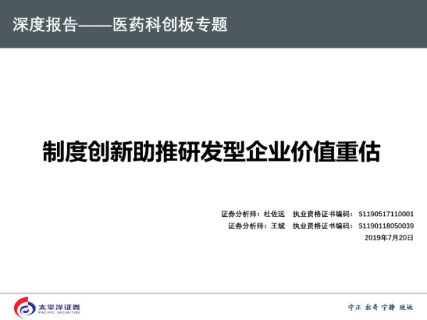 【太平洋证券】【20190720】医药科创板专题:制度创新助推研发型企业价值重估-93页 行业研究