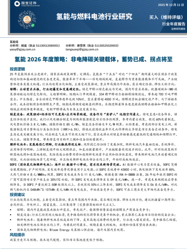 【国金证券】【202603】氢能与燃料电池行业研究:能源安全与双碳目标交汇,氢能开启规模化元年-37页 行业研究
