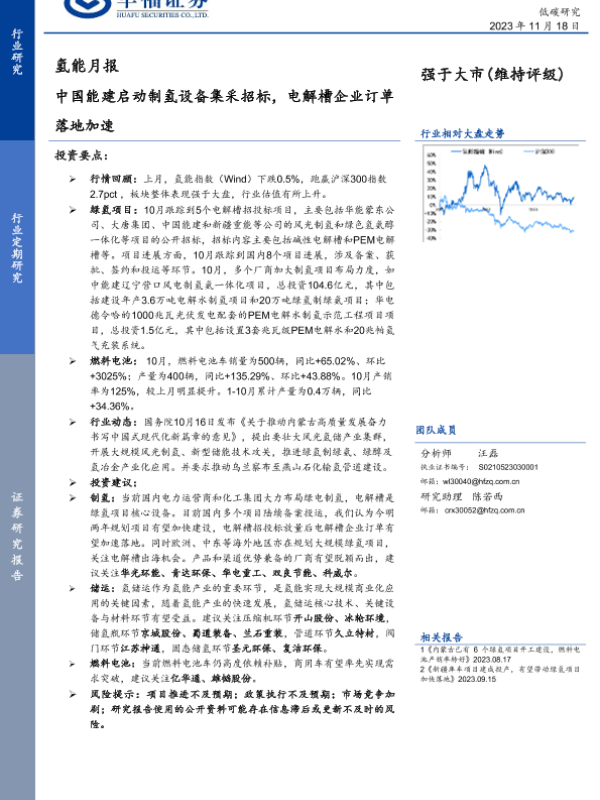 【华福证券】【20231118】氢能月报:中国能建启动制氢设备集采招标,电解槽企业订单落地加速-10页 行业研究