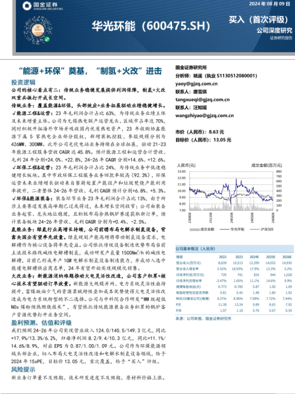 【国金证券】【20240809】“能源+环保”奠基,“制氢+火改”进击-24页 行业研究