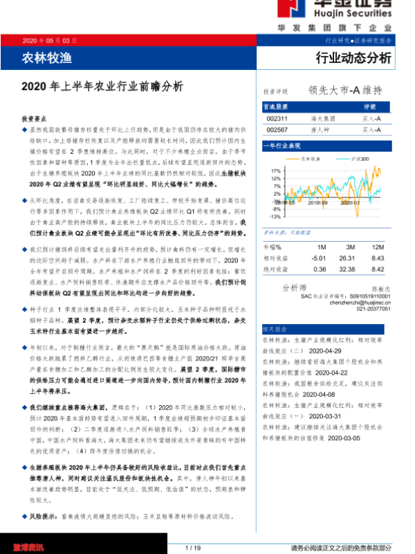 【华金证券】【20200503】2020年上半年农业行业前瞻分析-19页 行业研究