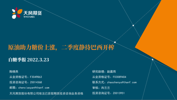 【天风期货】【20220323】白糖季报:原油助力糖价上涨,二季度静待巴西开榨-32页 行业研究
