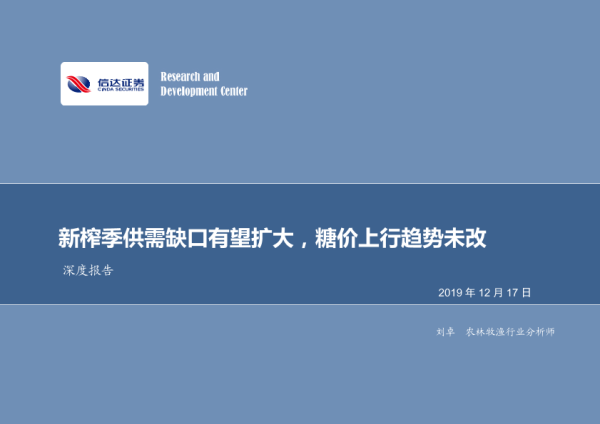 【信达证券】【20191217】新榨季供需缺口有望扩大,糖价上行趋势未改-22页 行业研究
