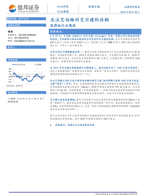 【德邦证券】【20190630】关注艾伯维对艾尔建的收购-8页 行业研究