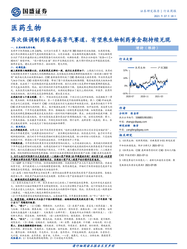 【国盛证券】【20210718】医药生物行业周报:再次强调制药装备高景气赛道,有望乘生物制药黄金期持续兑现-29页 行业研究