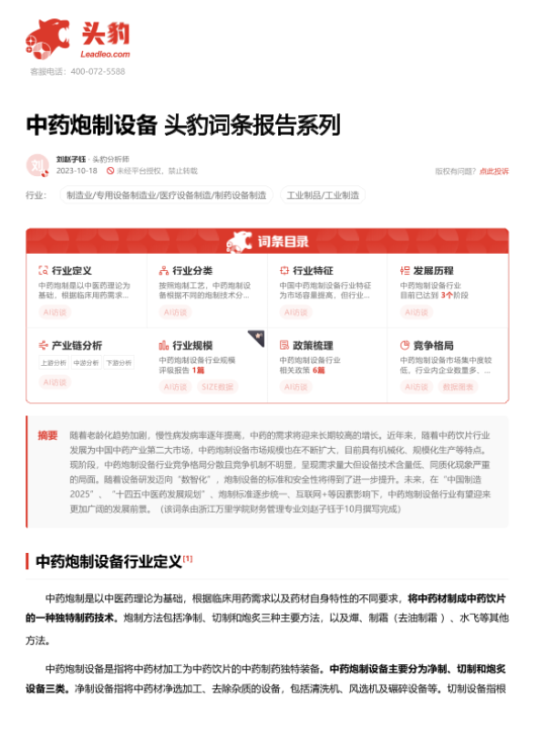 【头豹研究院】【20231018】中药炮制设备 头豹词条报告系列-18页 行业研究