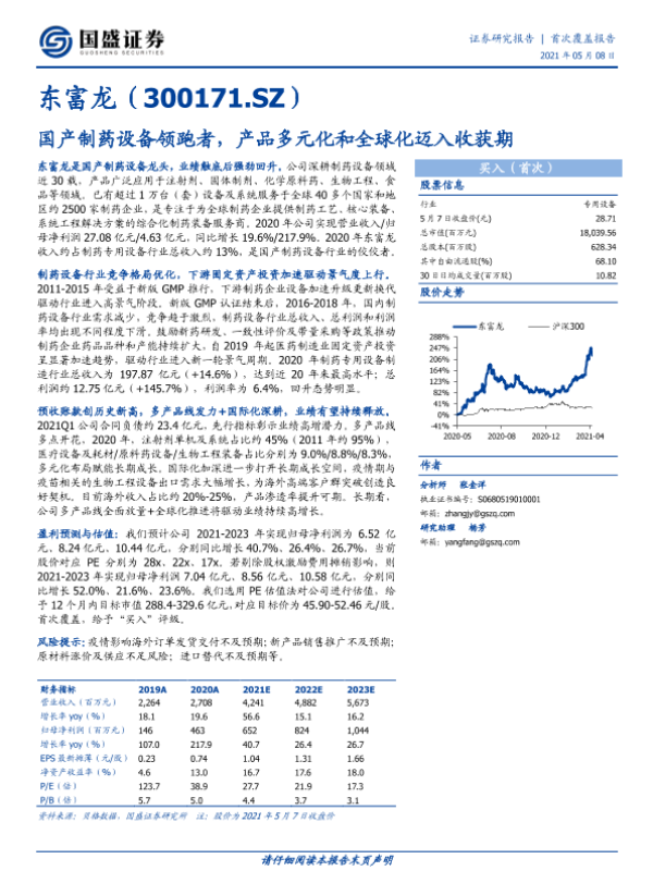 【国盛证券】【20210508】东富龙:国产制药设备领跑者,产品多元化和全球化迈入收获期-20页 行业研究