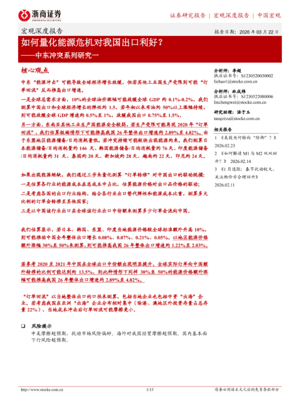 【浙商证券】【202603】如何量化能源危机对我国出口利好?——中东冲突系列研究一-15页 证券期货研究报告