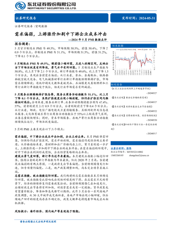 【东北证券】【20240531】2024年5月PMI数据点评:需求偏弱,上游涨价加剧中下游企业成本冲击-11页 行业研究