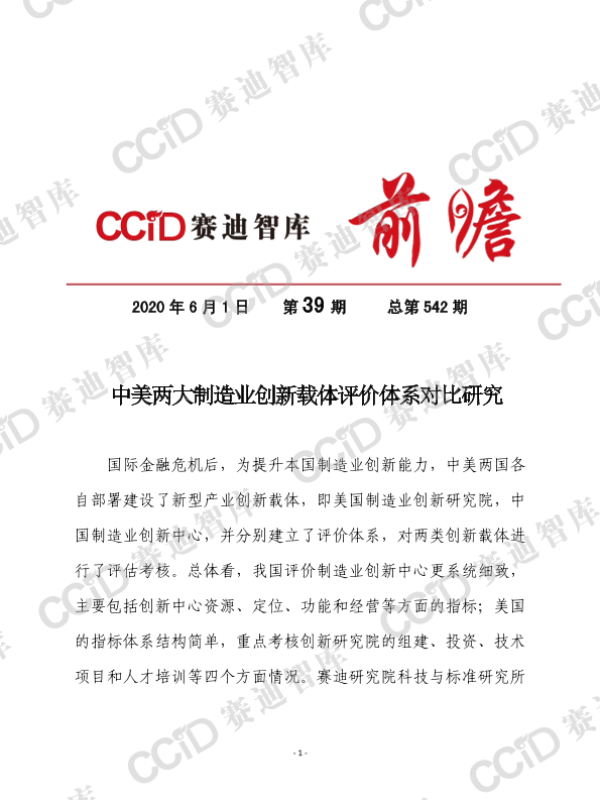 【赛迪研究院科技与标准研究所】【20200601】中美两大制造业创新载体评价体系对比研究-11页 行业研究