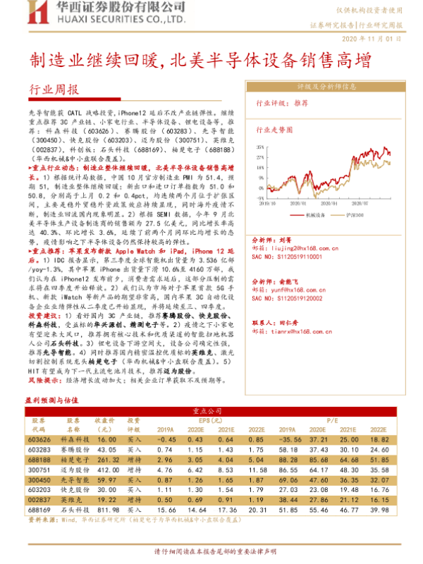 【华西证券】【20201101】20201101-华西证券-机械行业周报:制造业继续回暖,北美半导体设备销售高增-20页 行业研究
