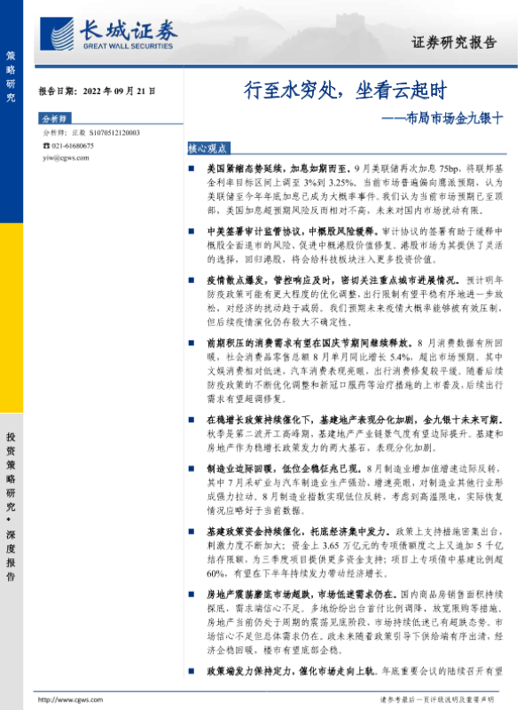 【长城证券】【20220921】布局市场金九银十:行至水穷处,坐看云起时-18页 行业研究