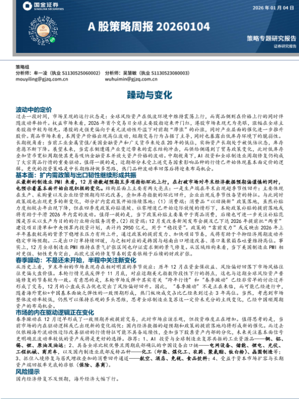 【国金证券】【202601】A股策略周报:躁动与变化-10页 证券期货研究报告