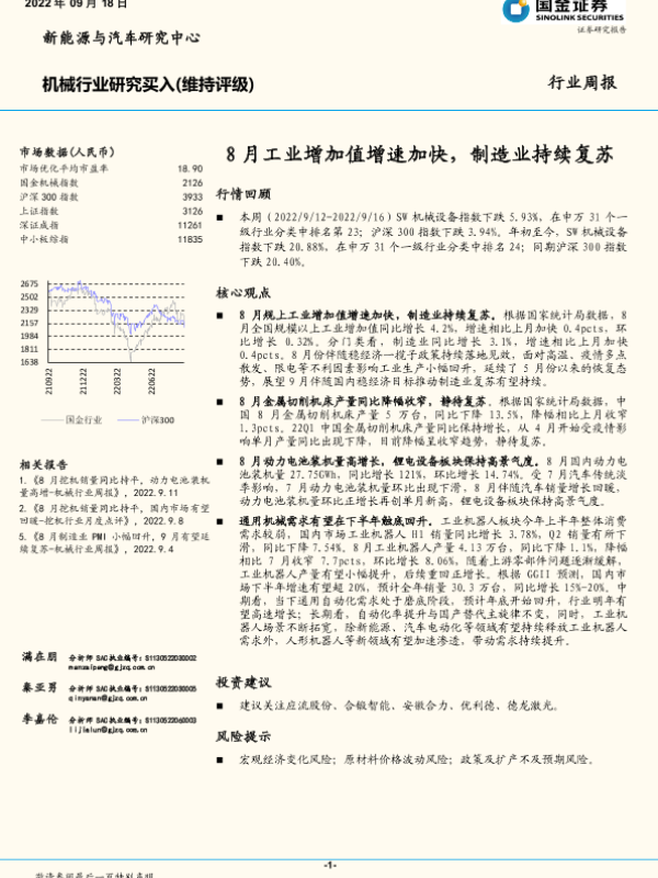 【国金证券】【20220918】20220918-国金证券-机械行业周报:8月工业增加值增速加快,制造业持续复苏-19页 行业研究