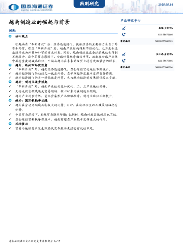 【国泰海通证券】【20250514】越南制造业的崛起与前景-17页 行业研究