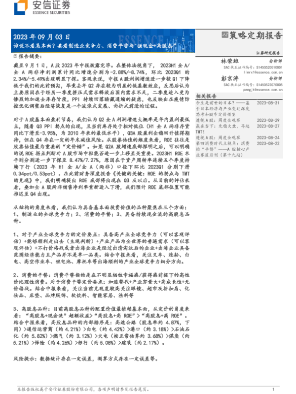【安信证券】【20230903】谁说不看基本面?要看制造业竞争力、消费平替与"强现金+高股息"-47页 行业研究