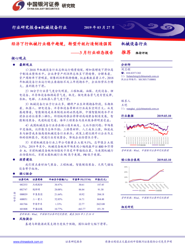 【银河证券】【20190327】机械设备行业:3月行业动态报告-经济下行机械行业稳中趋缓,转型升级打造制造强国-27页 行业研究