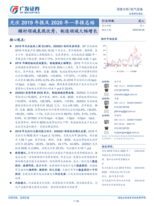 【广发证券】【20200505】光伏2019年报及2020年一季报总结:辅材领域表现优秀,制造领域大幅增长-19页 行业研究