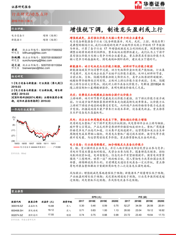 【华泰证券】【20190306】电力设备Ⅱ 新能源Ⅱ动态点评:增值税下调,制造龙头盈利或上行-8页 行业研究