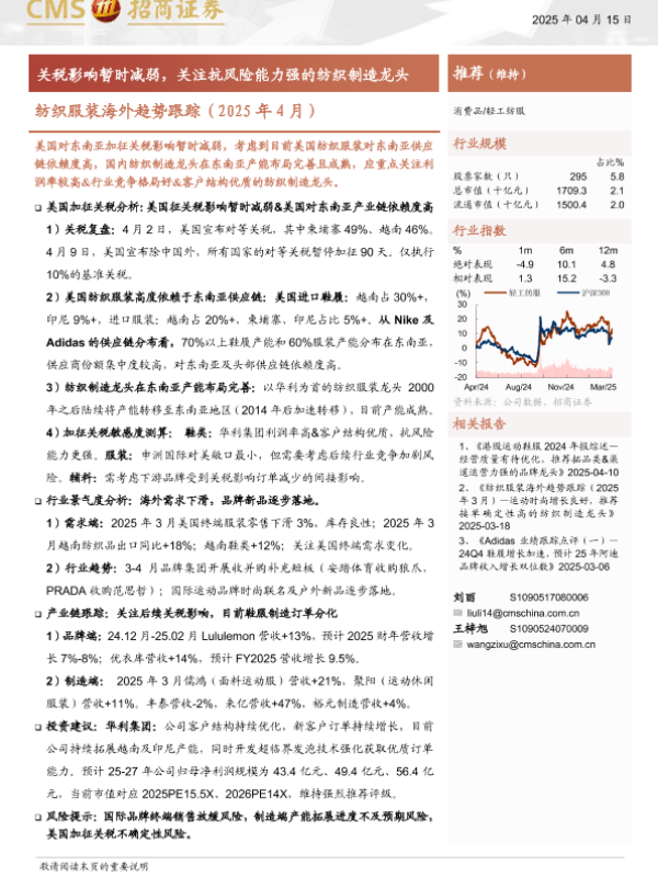【海通证券】【20250415】纺织服装行业海外趋势跟踪-18页 行业研究