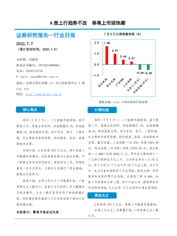 【大同证券】【20220707】A股上行趋势不改 券商上市迎热潮-10页 行业研究
