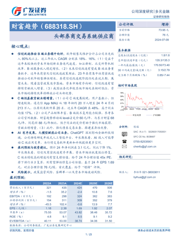 【广发证券】【20240709】财富趋势(688318)头部券商交易系统供应商-23页 行业研究