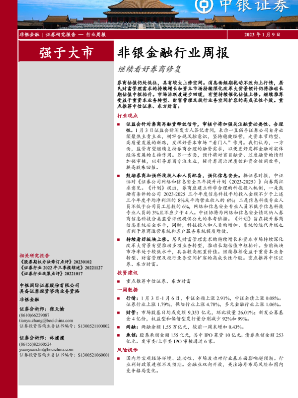【中银证券】【20230109】非银金融行业周报:继续看好券商修复-11页 行业研究