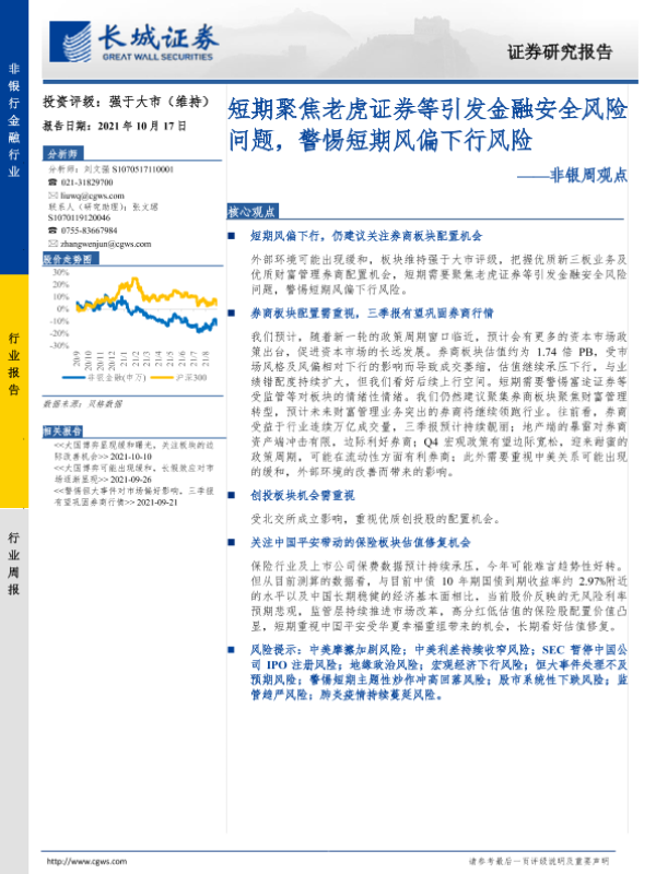 【长城证券】【20211017】短期聚焦老虎证券等引发金融安全风险问题,警惕短期风偏下行风险-35页 行业研究